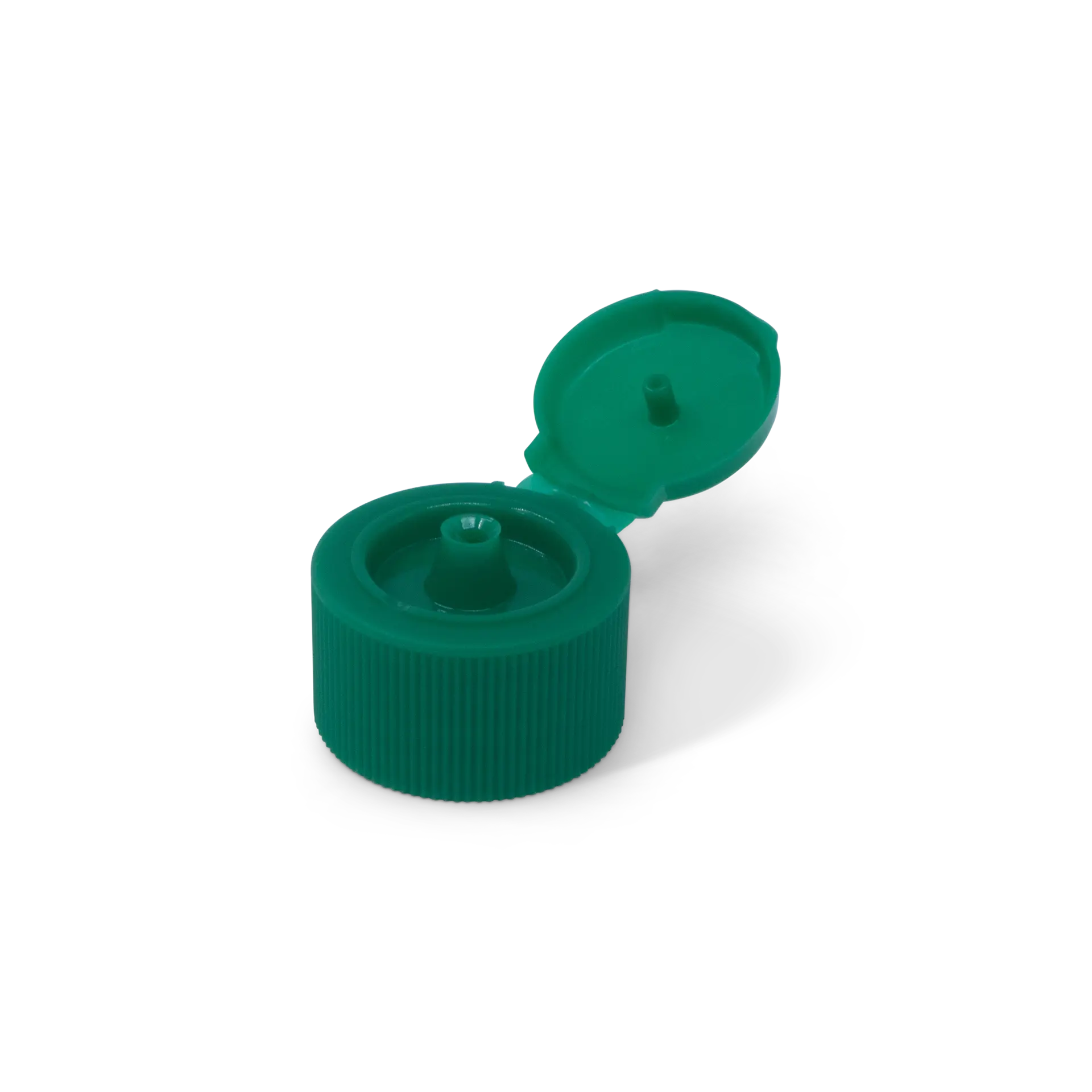28 mm flip top cap with small lid, 3 mm orifice and ribbed body with a recessed deck.