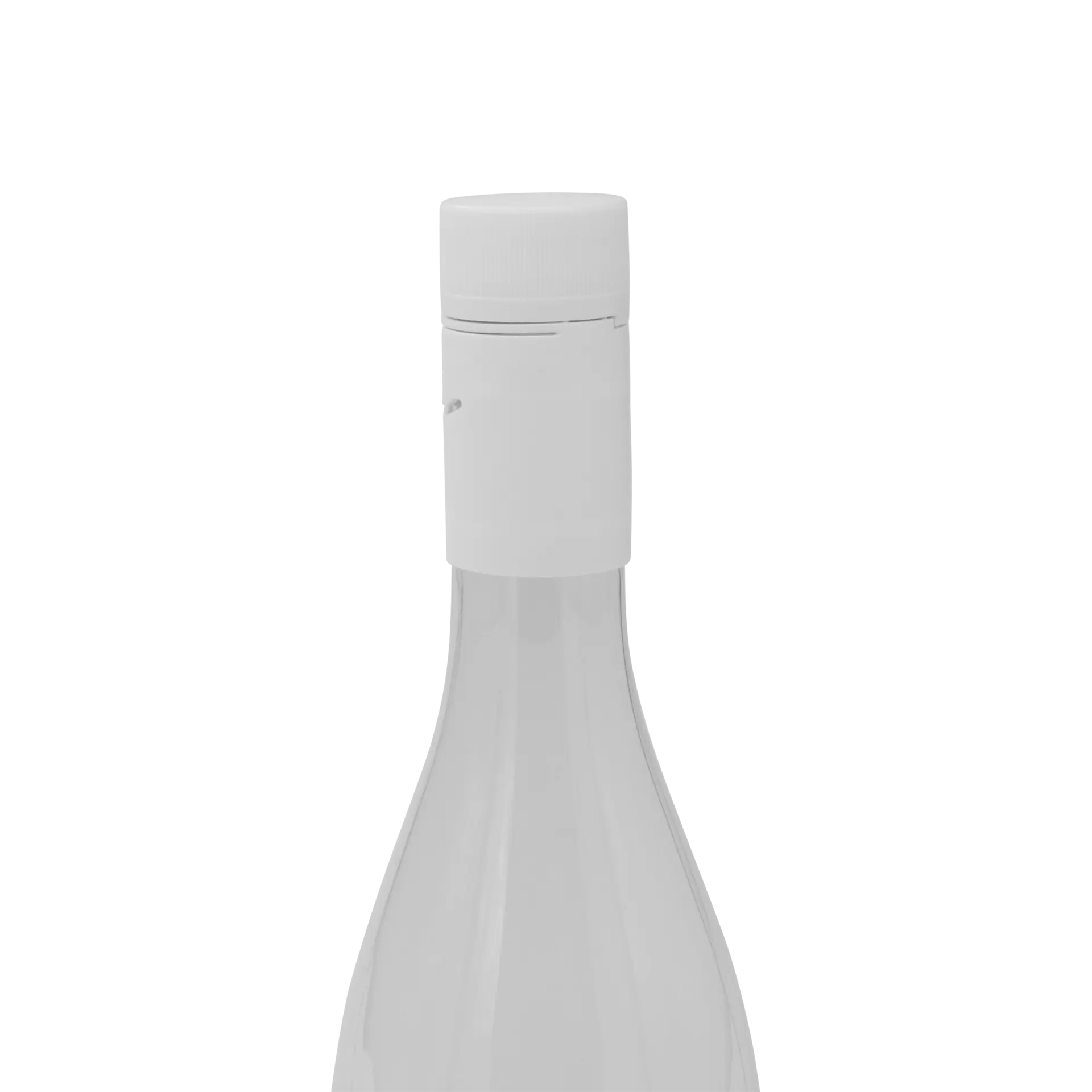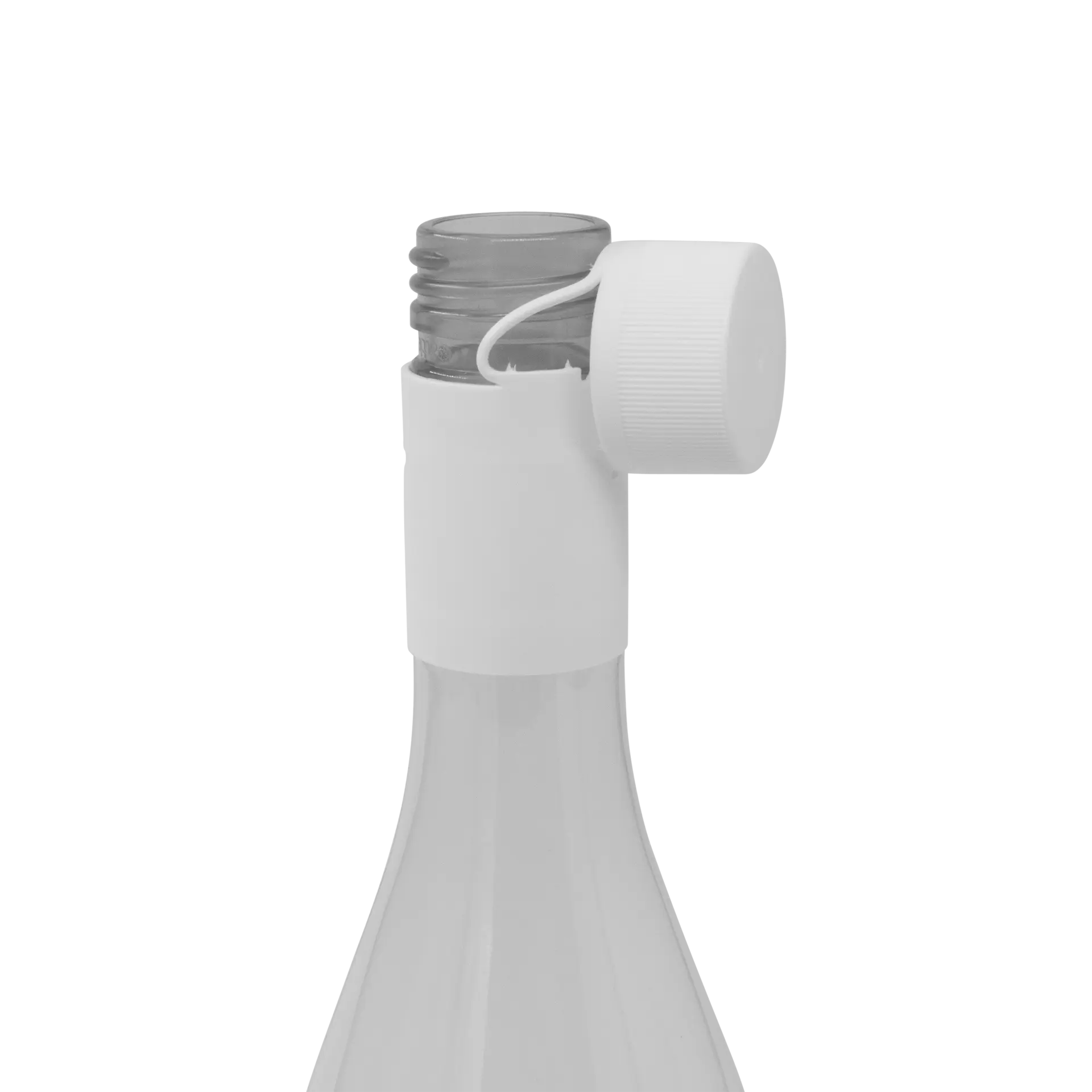 Tethered Tamper evident screw cap (EmStay) with 28 mm thread. Available with Saranex liner or EVOH liner (PVDC free). Our patented tethered solution with cutouts allows the cap to be secured on the bottleneck and avoid spillage while pouring liquids.